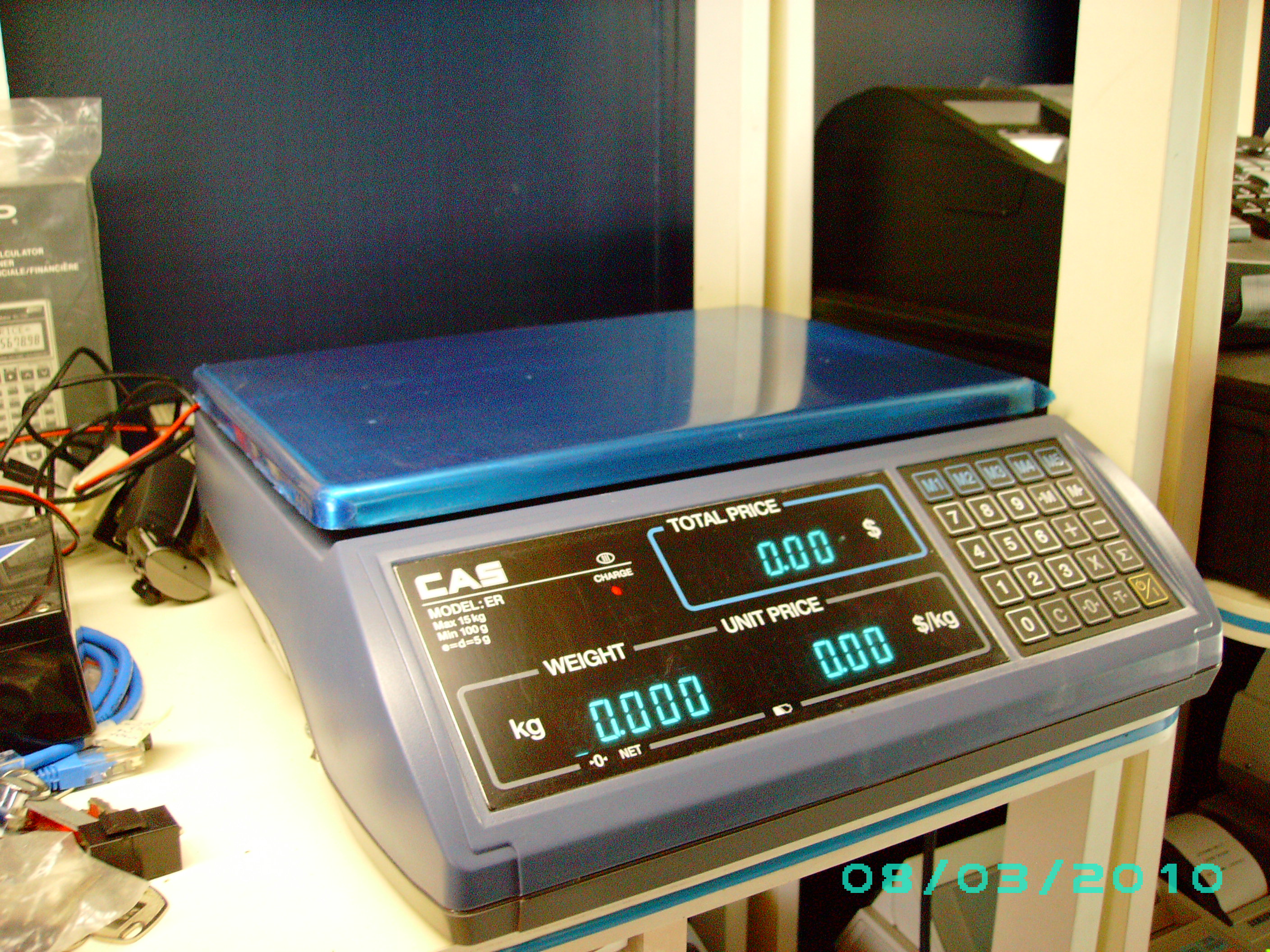 15 kg with battery and AC. Trade approved. Connect to Cash Register or POS
