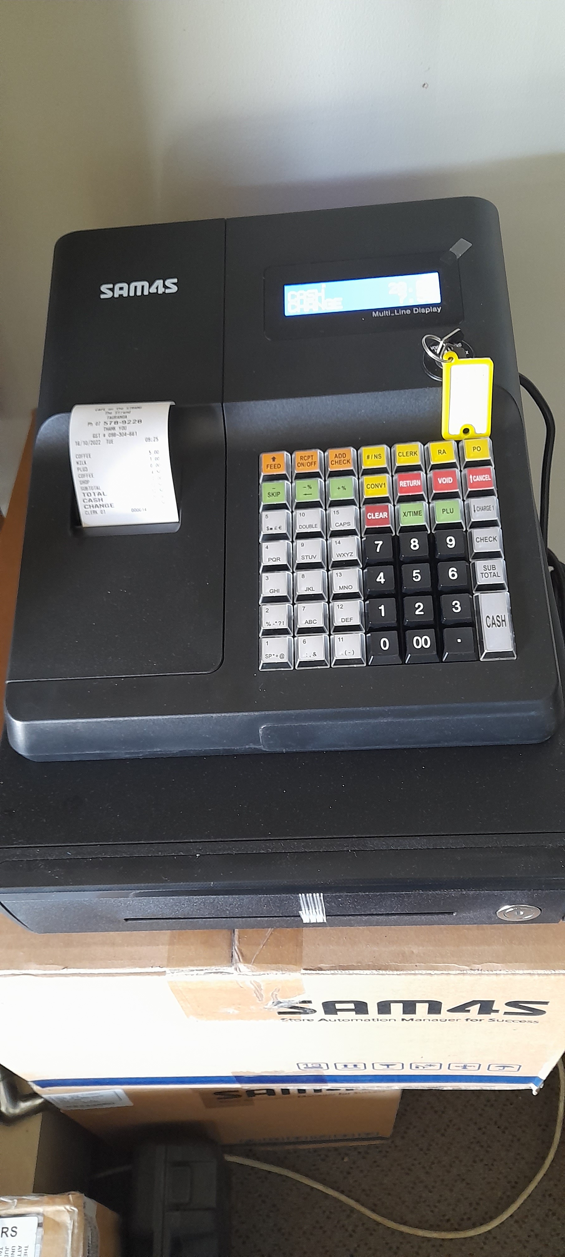 77 presets in 2 keypads, 8 line LCD display, comes with a new 80mm thermal printer and drawer. First time labelling and programming to suit included in price.