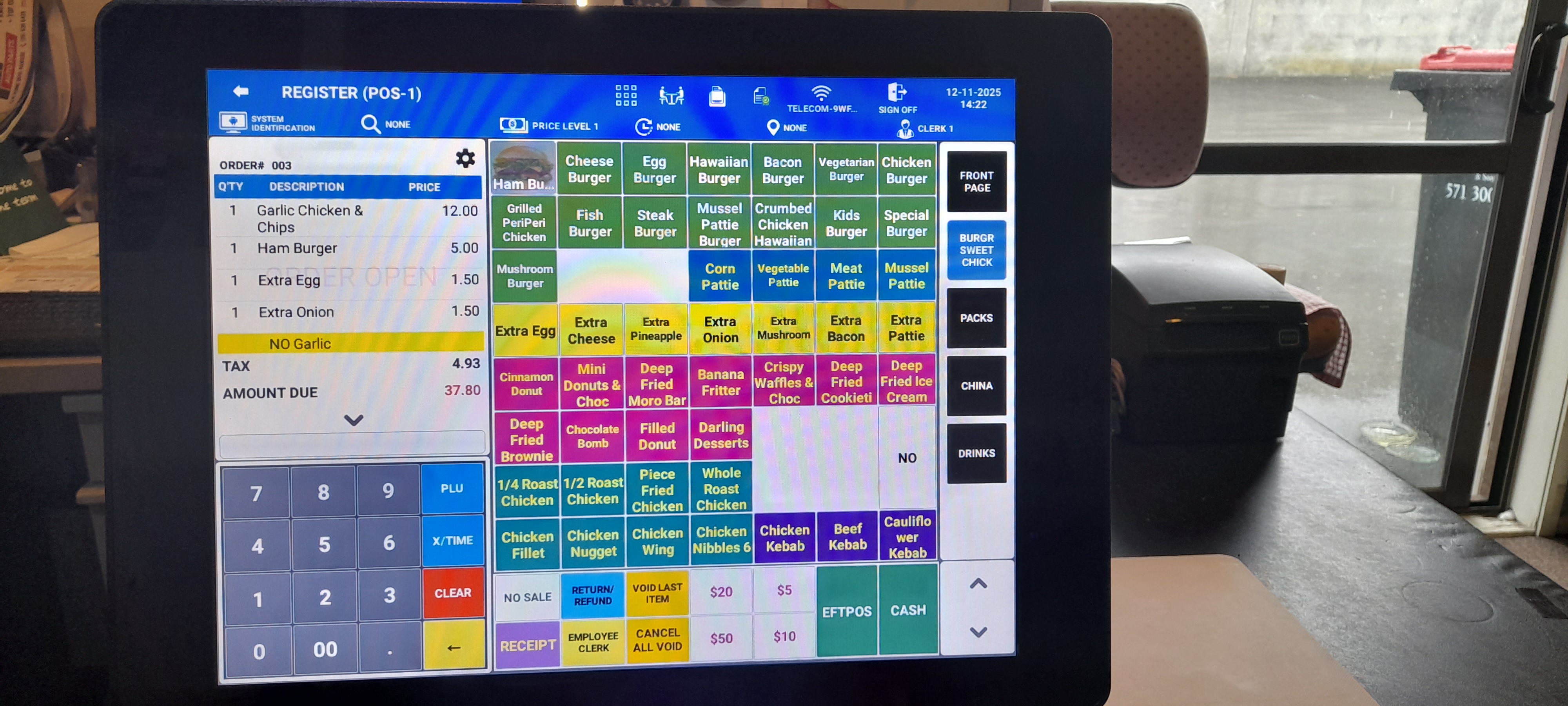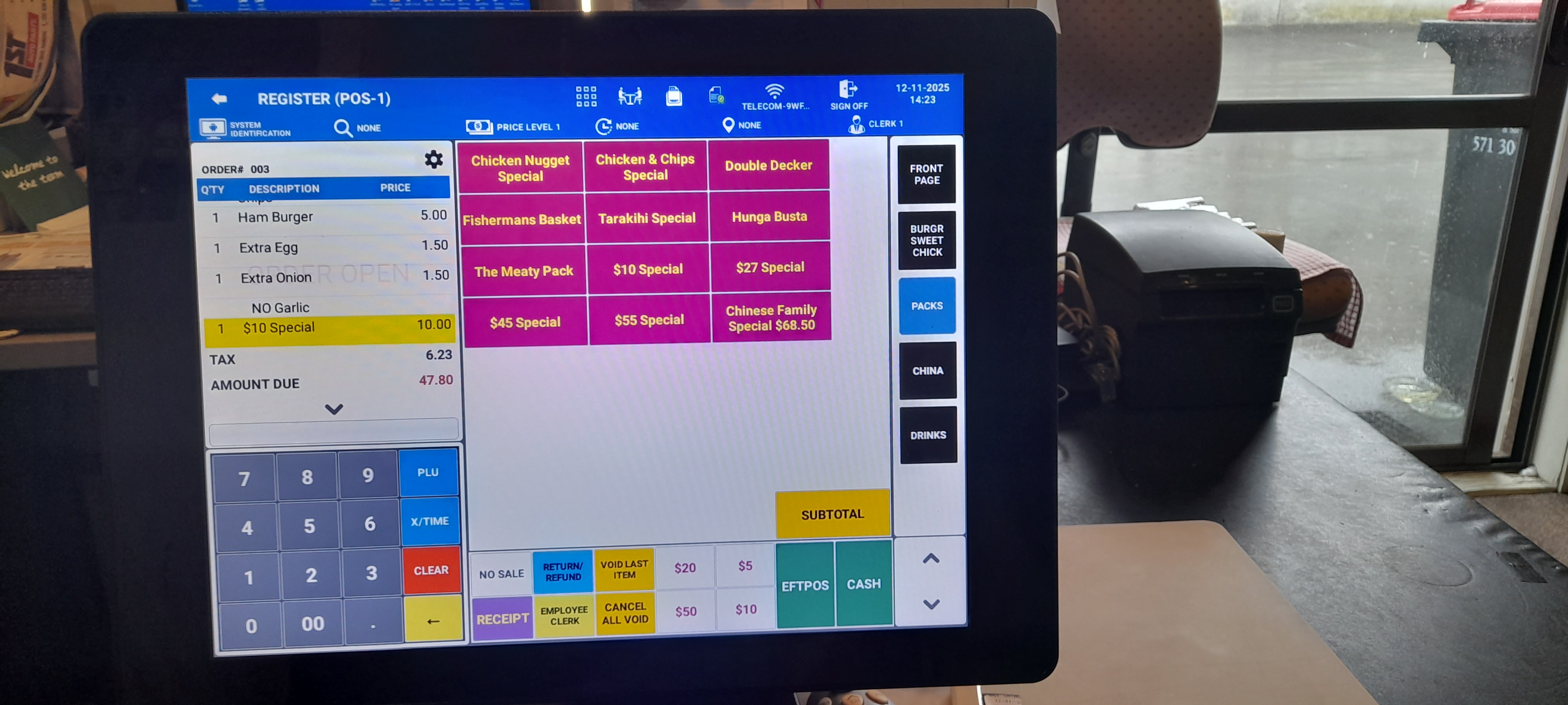 Will link to Verifone and Ingenico Eftpos, CAS Scale, Kitchen Printer, Scanner, 3 x RS232 ports, 6 USB ports, LAN, VGA, 24/12 volt drawer. Suitable for Clubs, Bars, Takeaways, Wholesale Liquor, $2 shops, Coffee and Sushi shops, Dairy Superette etc. Price includes programming to suit, 12 months warranty BTB(Back to Base), 10 x 80 x 80 free Thermal Rolls, No charge for upgrades or program fixes. |
